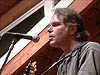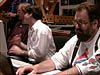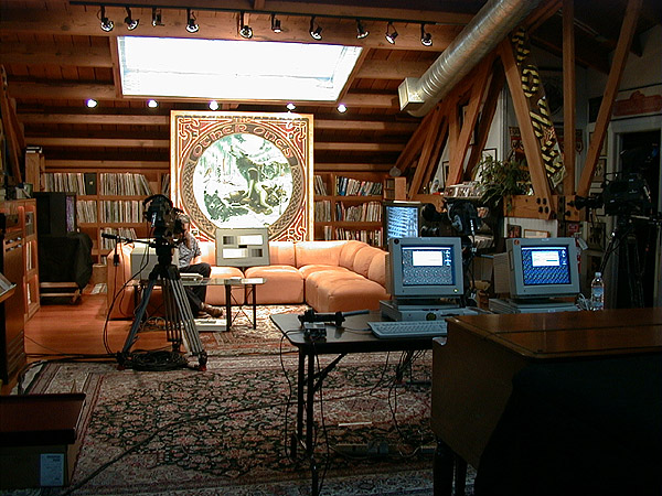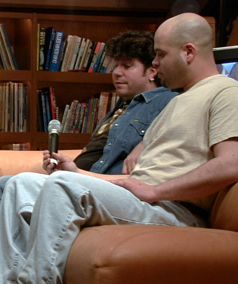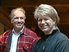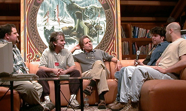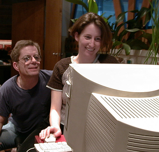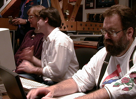 Karen helps PR man Dennis McNally choos questions from the internet audience